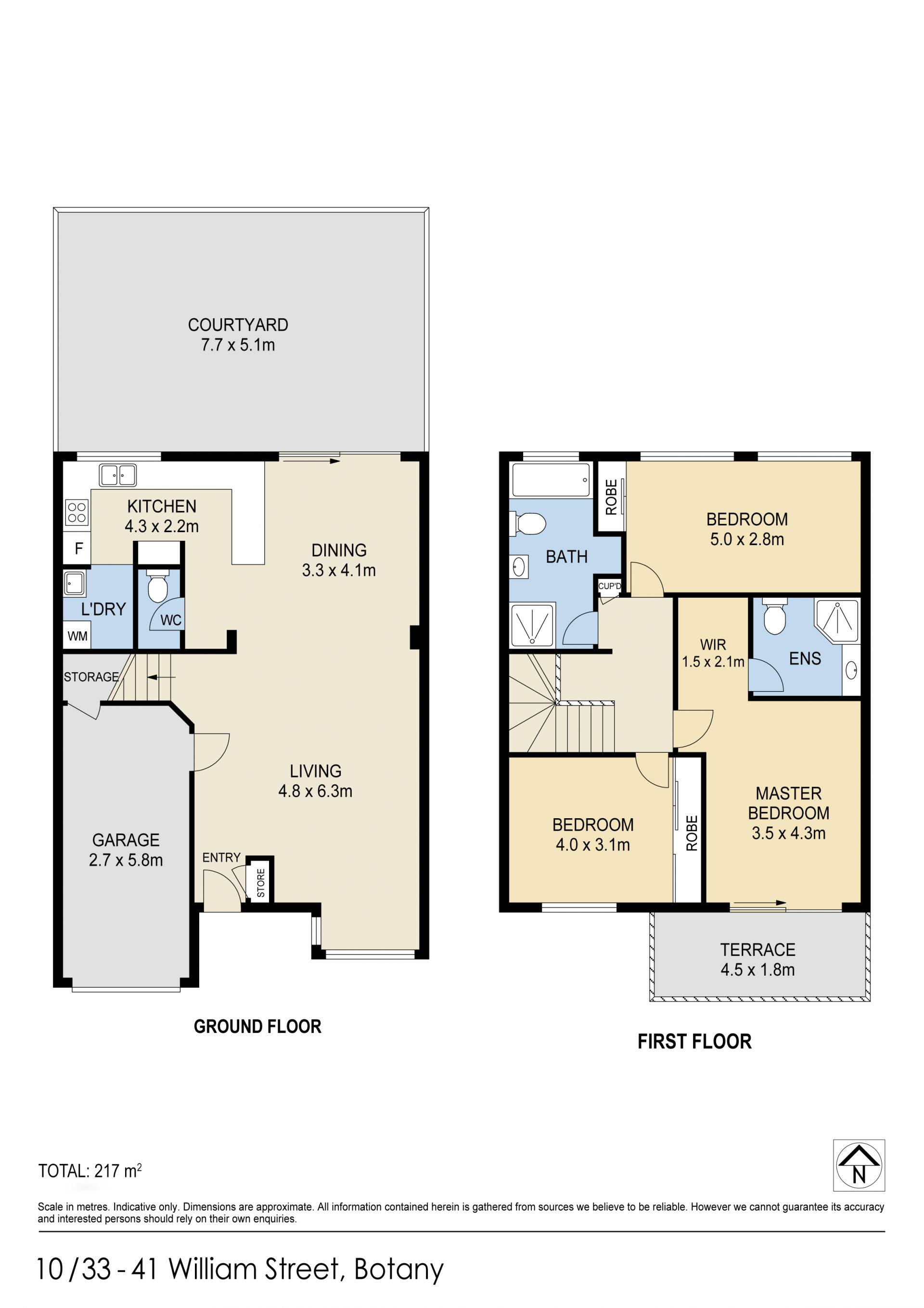 This well presented townhouse offers 217 square metres of usable space. Features include; 3 spacious bedrooms. Master with walk-in robe, ensuite bathroom and large balcony. Mirrored built-ins in the other two. Main bathroom upstairs plus a 3rd wc downstairs. Internal laundry, modern gas eat-in kitchen with plenty of cupboard and bench space. Open plan lounge and dining area plus a large rear courtyard. Lock-up garage with remote control door plus car space for a 2nd vehicle. Plenty of storage space. There is a communal in-ground pool within the complex and adjacent party room which can be hired for personal use. Enjoying a Southerly aspect. Located close to Primary Schools, Botany Aquatic Centre, public transport, cafes, parks and Westfield Eastgardens Shopping Centre. Council $374.86pq; Water $175.98pq; Strata $1,817.43pq.