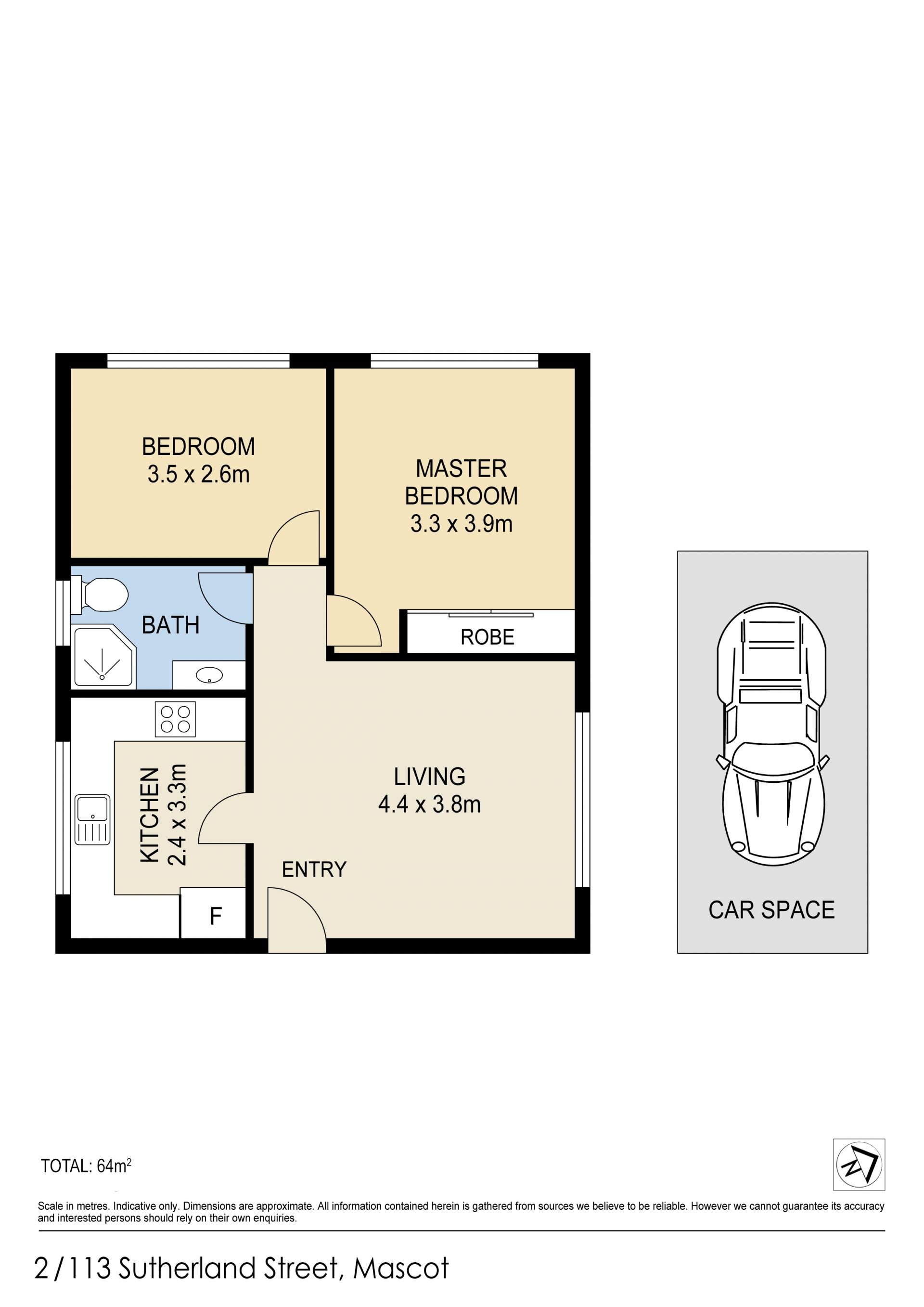 This 2 bedroom ground floor front unit is in a security block of 12 and is 64 square metres in area. Features include; stylish kitchen boasting quality gas stainless steel cooking appliances with dishwasher. Modern bathroom, combined lounge and dining area with parquetry floors throughout. There are no common walls. Enjoying a North/Westerly aspect and comes with a share laundry and car space. Located close to L'Estrange Park, schools and Mascot shops. Centrally located to the M1, M5 and M8 motorways, Westfield Eastgardens, Sydney Airport and approximately 9 kilometres to the CBD.